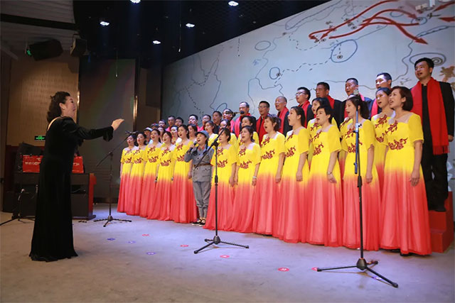 文藝匯演在全場(chǎng)合唱《沒有共產(chǎn)黨就沒有新中國(guó)》中落下帷幕。合唱由陳樹林同志指揮。