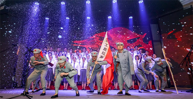 合唱《過雪山草地》展現(xiàn)了紅軍長(zhǎng)征的艱辛歷程,歌頌了紅軍將士革命理想高于天的堅(jiān)定信仰;《我和我的祖國(guó)》把血脈同根、根根相連唱成歌,無論走到哪里都流出一首贊歌。