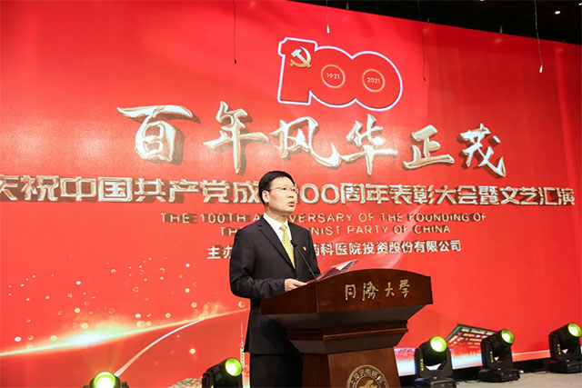 胸懷千秋偉業(yè),百年恰是風(fēng)華正茂。中國(guó)共產(chǎn)黨百年華誕前夕,6月29日下午,公司在同濟(jì)大學(xué)附屬天佑醫(yī)院國(guó)際會(huì)議廳,隆重舉辦慶祝中國(guó)共產(chǎn)黨成立100周年表彰大會(huì)暨文藝匯演,回顧黨的輝煌歷程,謳歌黨的豐功偉績(jī),表彰黨建先進(jìn)典型,感悟黨的寶貴經(jīng)驗(yàn)啟示。公司董事長(zhǎng)卓立強(qiáng)同志等公司領(lǐng)導(dǎo)、機(jī)關(guān)干部,醫(yī)院、子公司班子成員,科室主任和護(hù)士長(zhǎng)代表,外聯(lián)項(xiàng)目領(lǐng)導(dǎo)、儲(chǔ)備人才和“兩優(yōu)一先”表彰對(duì)象共330余人出席。上海市衛(wèi)生健康委員會(huì)新聞宣傳處處長(zhǎng)艾曉金、上海新華傳媒連鎖有限公司黨委書記鈕也仿、前金盾藝術(shù)團(tuán)導(dǎo)演丁勇斌、上海市越劇院國(guó)家一級(jí)演員鄧華蔚蒞臨會(huì)議指導(dǎo)。公司常務(wù)副總裁劉詩(shī)強(qiáng)同志主持表彰大會(huì)。