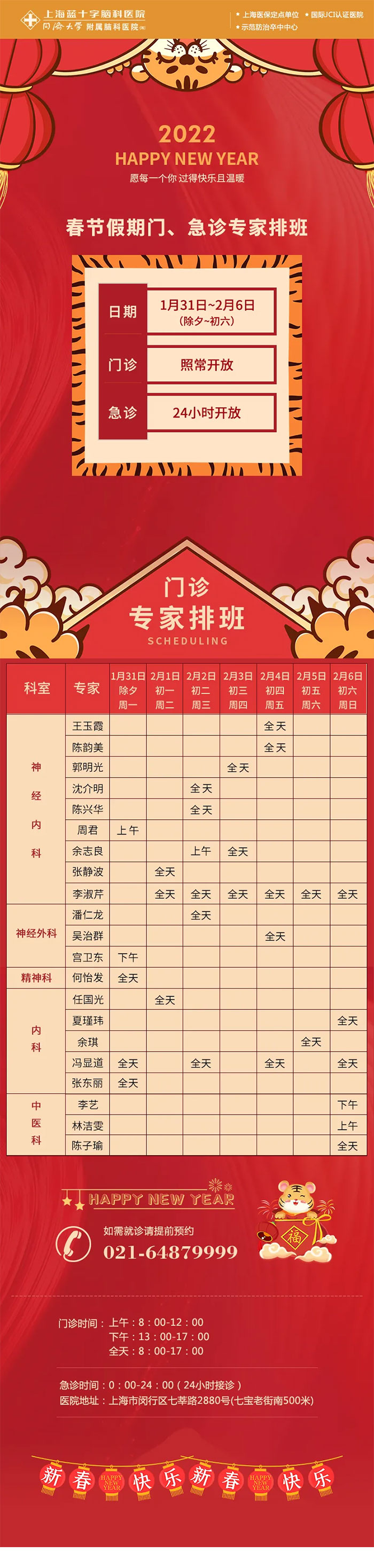 2022年春節(jié)長假將至,上海藍(lán)十字腦科醫(yī)院預(yù)祝廣大市民朋友們過一個(gè)歡樂祥和的中國年。