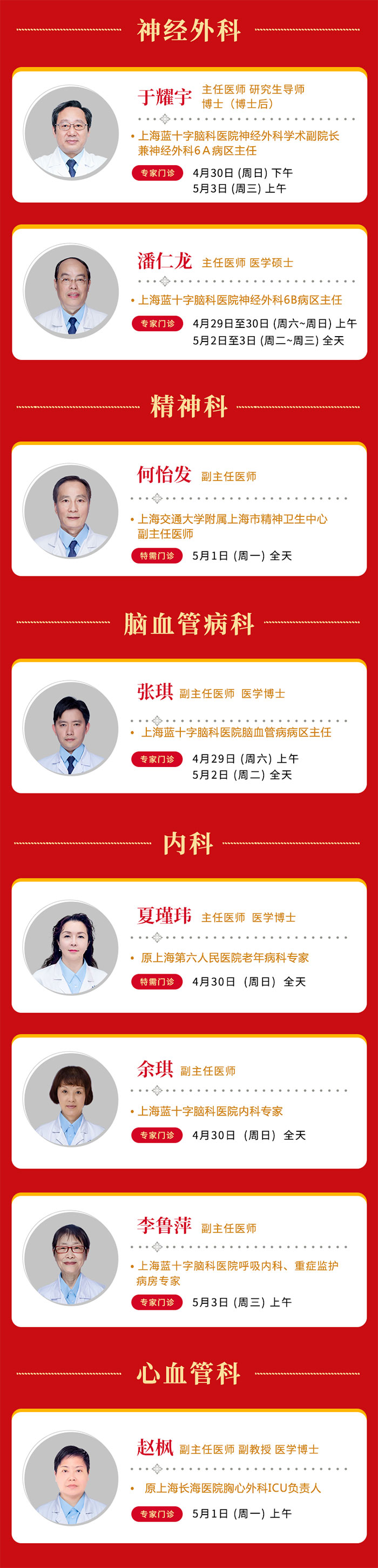上一篇:【公告】上海藍(lán)十字腦科醫(yī)院2023年清明節(jié)假期門診排班 下一篇:【公告】上海藍(lán)十字腦科醫(yī)院2023年端午節(jié)假期門、急診安排