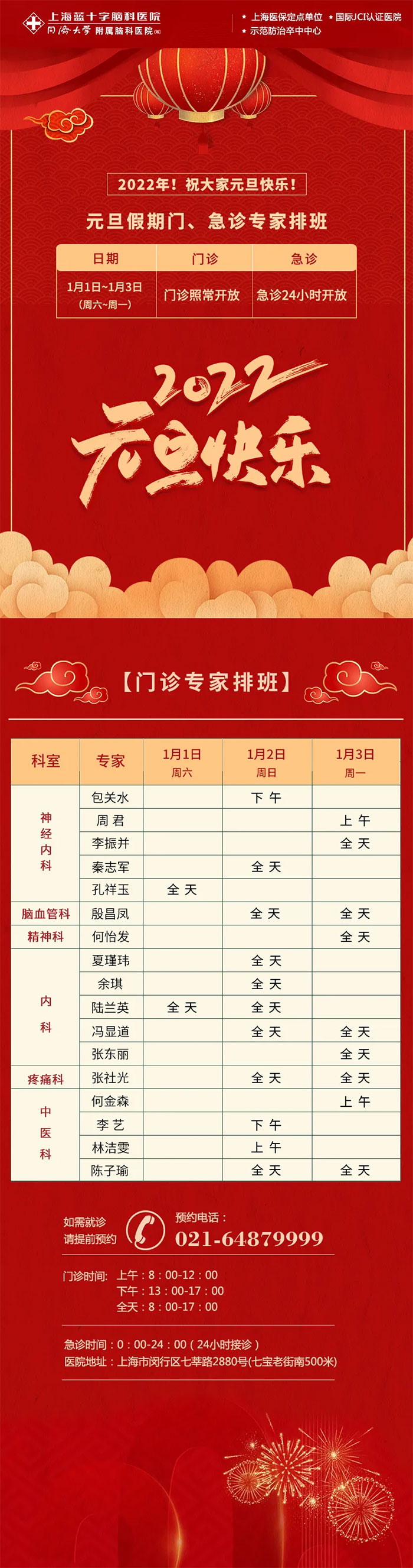 最后,上海藍十字腦科醫(yī)院全體醫(yī)護人員恭祝廣大市民朋友們——節(jié)日快樂,闔家歡樂,幸福安康!