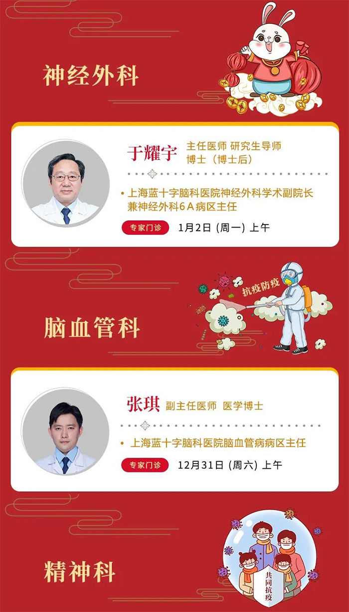 上一篇:【公告】上海藍(lán)十字腦科醫(yī)院2022年國(guó)慶節(jié)假期門(mén)診排班 下一篇:【公告】上海藍(lán)十字腦科醫(yī)院2023年春節(jié)假期門(mén)診安排