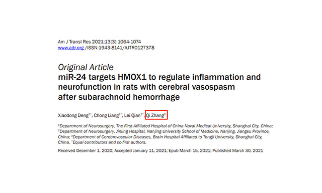 上海藍十字腦科醫(yī)院科研工作再傳喜報——醫(yī)院腦血管病科主任張琪博士在專業(yè)學術期刊American Journal of Translational Research 《美國轉化研究雜志》發(fā)表的《m...[詳情]