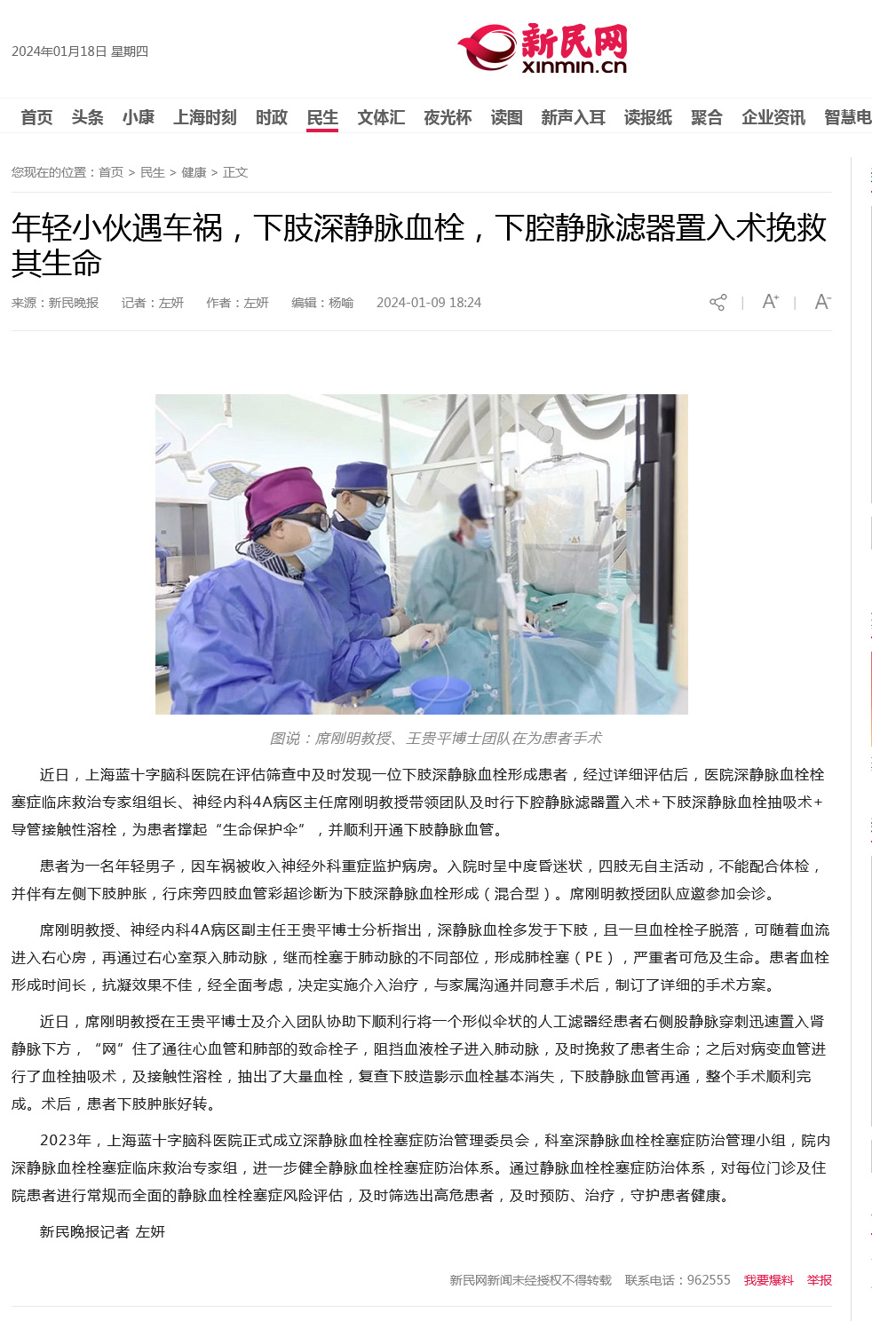 近日,上海藍十字腦科醫(yī)院在評估篩查中及時發(fā)現(xiàn)一位下肢深靜脈血栓形成患者,經(jīng)過詳細評估后,醫(yī)院深靜脈血栓栓塞癥臨床救治專家組組長、神經(jīng)內(nèi)科4A病區(qū)主任席剛明教授帶領(lǐng)團隊及時行下腔靜脈濾器置入術(shù)+下肢深靜脈血栓抽吸術(shù)+導(dǎo)管接觸性溶栓,為患者撐起“生命保護傘”,并順利開通下肢靜脈血管。