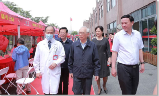 原上海市副市長、上海市擁軍優(yōu)屬基金會理事長周太彤在基金會志愿服務(wù)總隊(duì)長張長東等陪同下,來到上海藍(lán)十字腦科醫(yī)院健康服務(wù)隊(duì)所在的“陣位”前,對由項(xiàng)耀鈞院長率領(lǐng)的專家團(tuán)隊(duì)關(guān)愛退伍軍人及軍屬表示感謝。