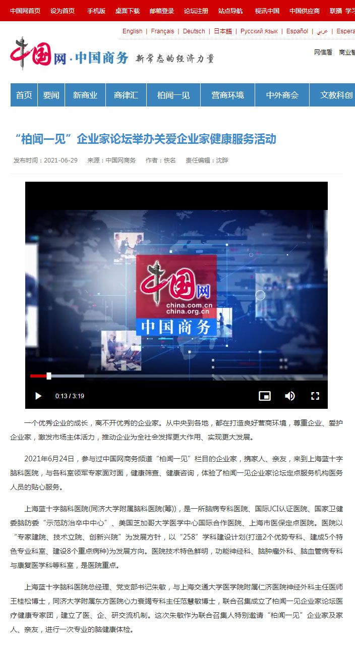 2021年6月24日,參與過中國網(wǎng)商務(wù)頻道“柏聞一見”欄目的企業(yè)家,攜家人、親友,來到上海藍(lán)十字腦科醫(yī)院,與各科室領(lǐng)軍專家面對面,健康篩查、健康咨詢,體驗了柏聞一見企業(yè)家論壇定點服務(wù)機構(gòu)醫(yī)務(wù)人員的貼心服務(wù)。