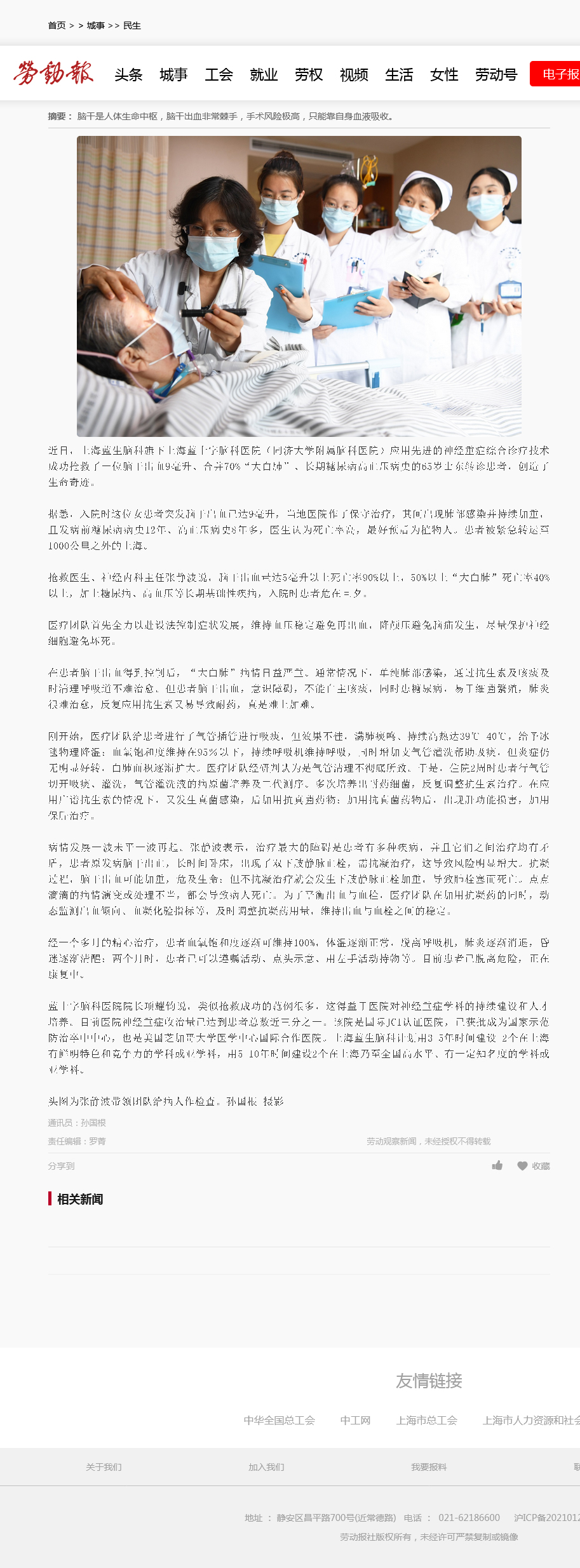 藍(lán)十字腦科醫(yī)院院長項耀鈞說,類似搶救成功的范例很多,這得益于醫(yī)院對神經(jīng)重癥學(xué)科的持續(xù)建設(shè)和人才培養(yǎng)。目前醫(yī)院神經(jīng)重癥收治量已達到患者總數(shù)近三分之一。該院是國際JCI認(rèn)證醫(yī)院,已獲批成為國家示范防治卒中中心,也是美國芝加哥大學(xué)醫(yī)學(xué)中心國際合作醫(yī)院。上海藍(lán)生腦科計劃用3-5年時間建設(shè) 2個在上海有鮮明特色和競爭力的學(xué)科或亞學(xué)科,用5-10年時間建設(shè)2個在上海乃至全國高水平、有一定知名度的學(xué)科或亞學(xué)科。