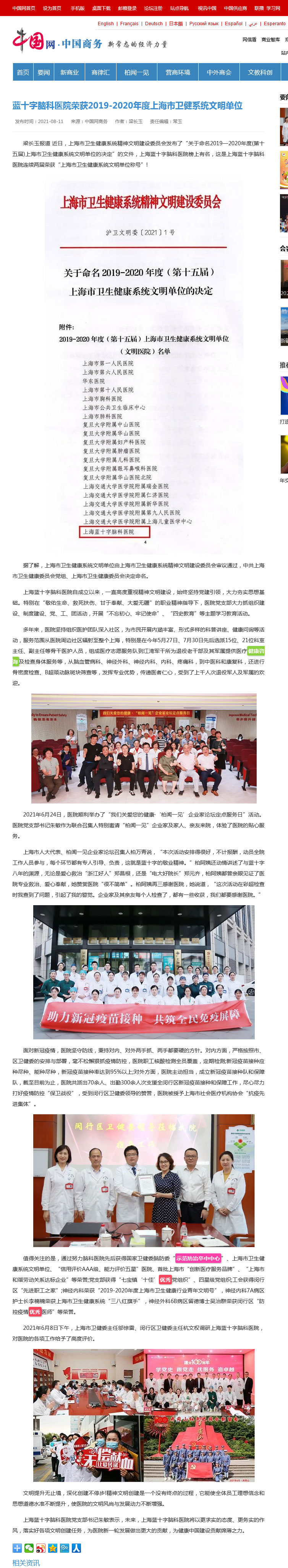 值得關(guān)注的是,通過努力腦科醫(yī)院先后獲得國家衛(wèi)健委腦防委“示范防治卒中中心”、上海市衛(wèi)生健康系統(tǒng)文明單位、“信用評價AAA級、能力評價五星”醫(yī)院、首批上海市“創(chuàng)新醫(yī)療服務(wù)品牌”、“上海市和諧勞動關(guān)系達標(biāo)企業(yè)”等榮譽;黨支部獲得“七寶鎮(zhèn)‘十佳’優(yōu)秀黨組織”、四星級黨組織;工會獲得閔行區(qū)“先進職工之家”;神經(jīng)內(nèi)科榮獲“2019-2020年度上海市衛(wèi)生健康行業(yè)青年文明號”,神經(jīng)內(nèi)科7A病區(qū)護士長李楠楠榮獲上海市衛(wèi)生健康系統(tǒng)“三八紅旗手”,神經(jīng)外科6B病區(qū)留德博士吳治群榮獲閔行區(qū)“防控疫情優(yōu)秀醫(yī)師”等榮譽。
