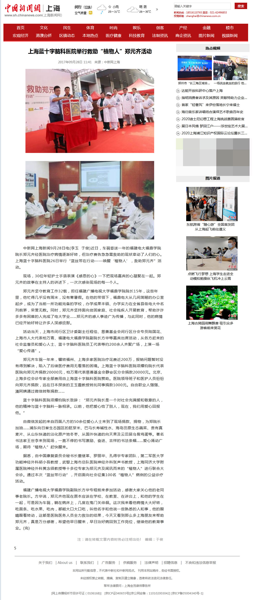 上一篇:中國(guó)網(wǎng) | 專(zhuān)家匯聚上海藍(lán)十字腦科醫(yī)院救助“植物人”鄭老師 下一篇:東方頭條 | 柏萬(wàn)青等愛(ài)心人士積極救助省優(yōu)秀教師鄭元齊,京滬專(zhuān)家會(huì)診共商后續(xù)治療