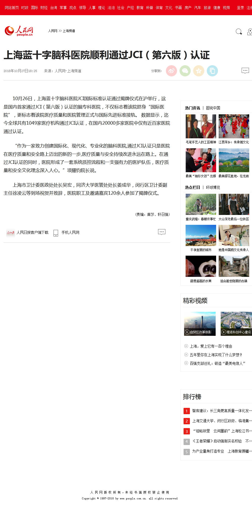 10月26日,上海藍(lán)十字腦科醫(yī)院JCI國際標(biāo)準(zhǔn)認(rèn)證通過揭牌儀式在滬舉行,標(biāo)志著該院醫(yī)療質(zhì)量和醫(yī)院管理正式與先進(jìn)標(biāo)準(zhǔn)接軌。 數(shù)據(jù)顯示,迄今全球共有1049家醫(yī)療機(jī)構(gòu)通過JCI認(rèn)證,在國內(nèi)20000多家醫(yī)院中僅有近百家醫(yī)院通過認(rèn)證。