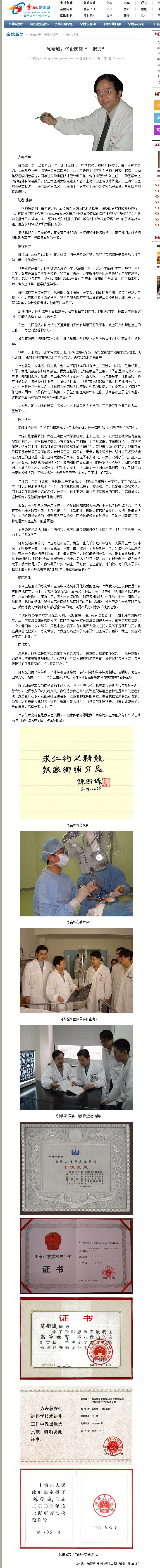 “這間辦公室是院方分配給我的。我現(xiàn)在在上海幾家醫(yī)院做顧問,比如上海東方醫(yī)院等。華山醫(yī)院每星期要查兩次房,醫(yī)院下面的一家分院每星期得去一次,東方醫(yī)院每星期去一次,看門診一次,那么一周基本上排滿了。”有時候因為受人之拖,雖然不是我開的刀,我也得跟著把把關(guān)。”陳銜城說,“我想可能這輩子離不開華山醫(yī)院了,當然,我也非常喜歡醫(yī)生這個職業(yè)。”