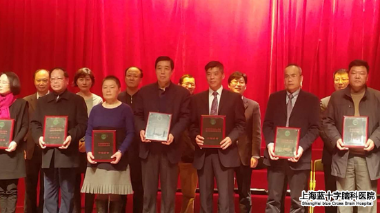 上海藍(lán)十字腦科醫(yī)院新院副院長袁士宗教授(前排左4)上臺接受獎牌