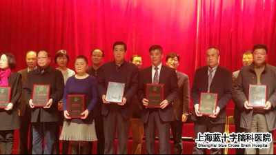 上海藍十字腦科醫(yī)院新院副院長袁士宗教授(前排左四)上臺接受獎牌