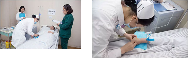 ▲ 密閉式靜脈輸液采用護士“當病人”