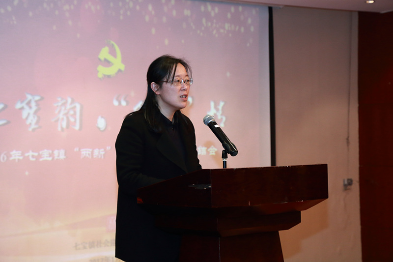 七寶鎮(zhèn)黨委委員、副鎮(zhèn)長、社建委書記金莉同志作年度黨建工作總結報告