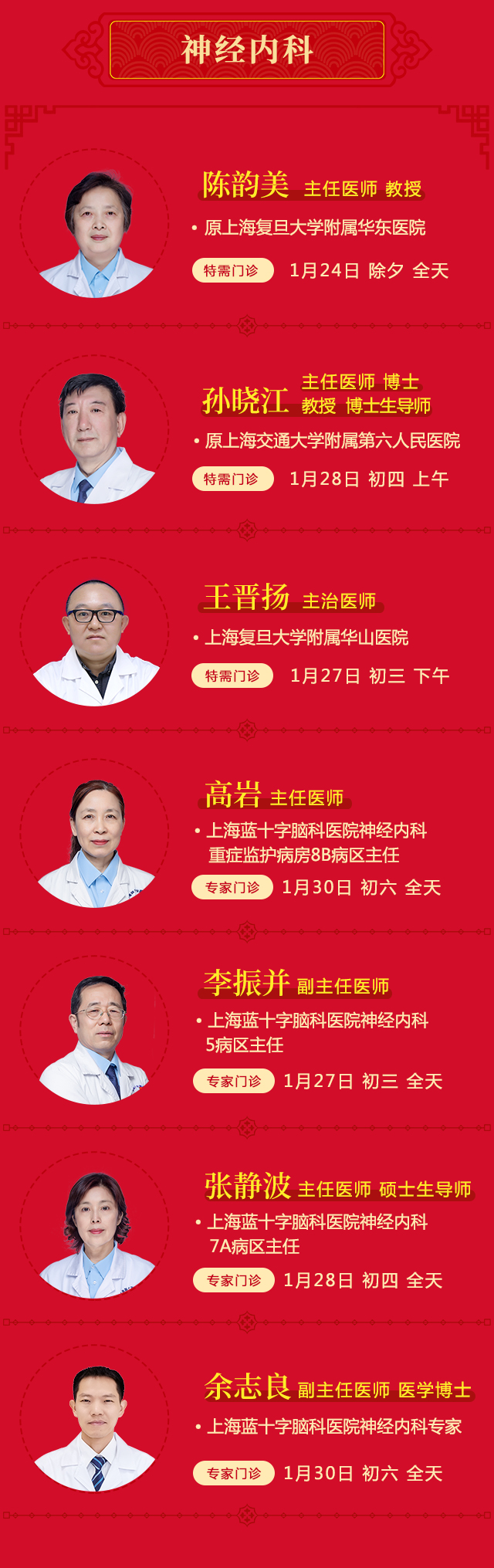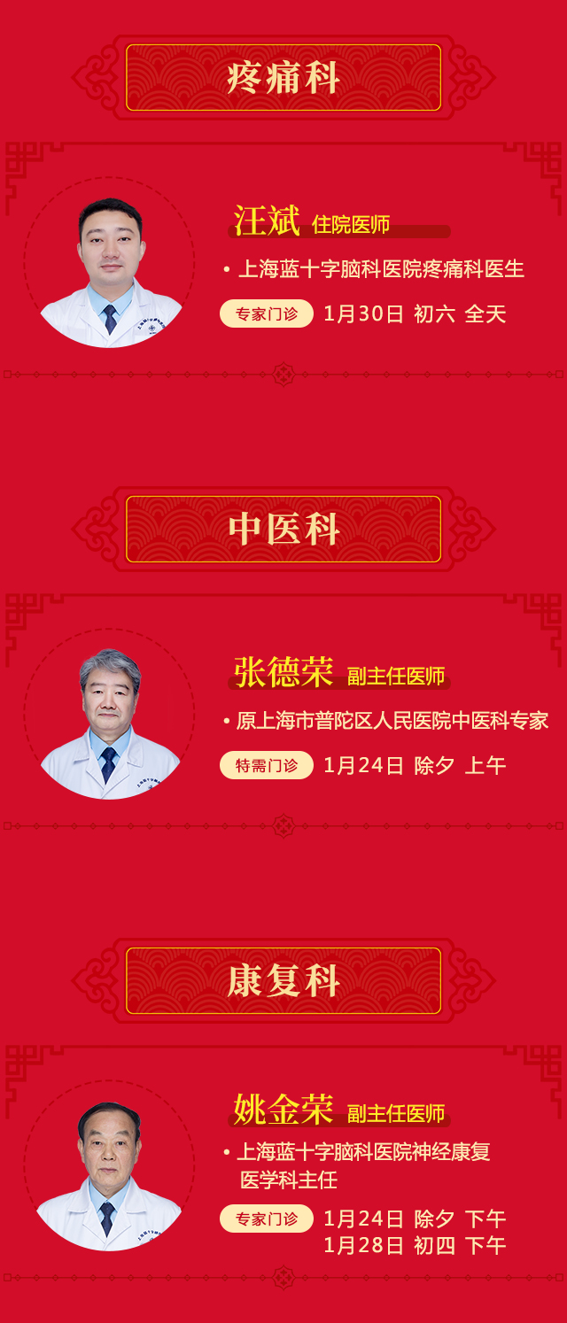 春節(jié)期間就診人數(shù)較多,如需就診,您可提前預(yù)約。預(yù)約電話:021-64879999。上海藍(lán)十字腦科醫(yī)院全體員工預(yù)祝您和您的家人節(jié)日快樂、身體安康!
