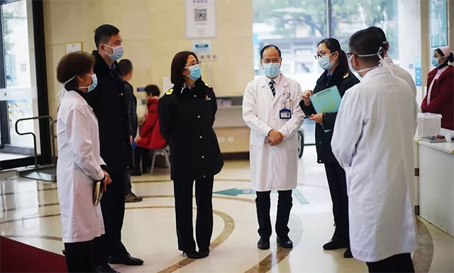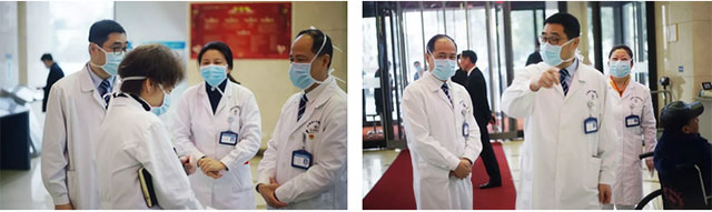 ▲ 醫(yī)院領導現(xiàn)場檢查防控工作