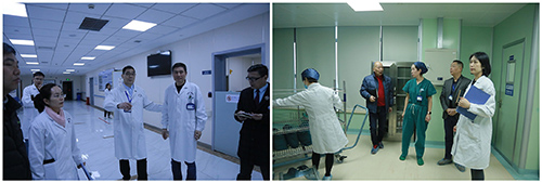 ▲潘耀良副院長帶領(lǐng)各科室負(fù)責(zé)人對醫(yī)院大樓各樓層進(jìn)行安全大檢查