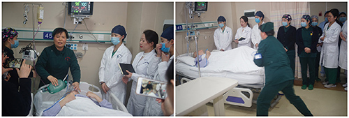 ▲潘水云護(hù)士長演示培訓(xùn)《危重患者搶救應(yīng)急預(yù)案》