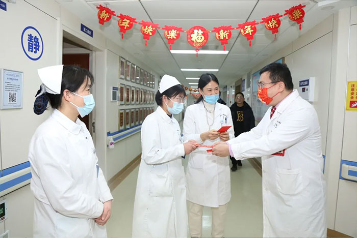 為生命開路者,不可使其困頓于荊棘。1月31日下午五時(shí),總經(jīng)理兼黨支部書記朱敏、院長(zhǎng)項(xiàng)耀鈞攜吳春芳、周克祥、郭榮峰等院領(lǐng)導(dǎo),深入各科室,親切慰問(wèn)值守人員,送上新年紅包、慰問(wèn)信和美味盒飯。院領(lǐng)導(dǎo)的關(guān)懷如春風(fēng)化雨,滋潤(rùn)心田,讓所有人如沐春風(fēng),倍感溫暖。