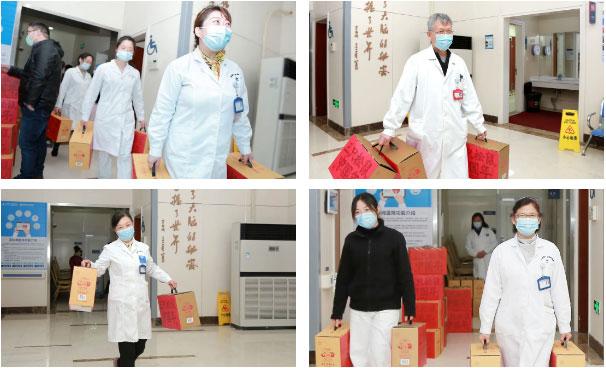 禮包發(fā)放現(xiàn)場,其樂融融,洋溢著喜迎新春的歡快氣氛。醫(yī)院領導現(xiàn)場一邊送上大禮包,一邊傳遞祝福: