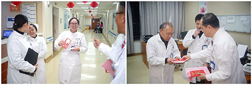 從除夕夜到大年初一,上海藍(lán)十字腦科醫(yī)院項(xiàng)耀鈞院長(zhǎng)與其他領(lǐng)導(dǎo)一起,向春節(jié)值班的醫(yī)生和護(hù)士們拜年,向他們表示節(jié)日的問(wèn)候和衷心的祝福。