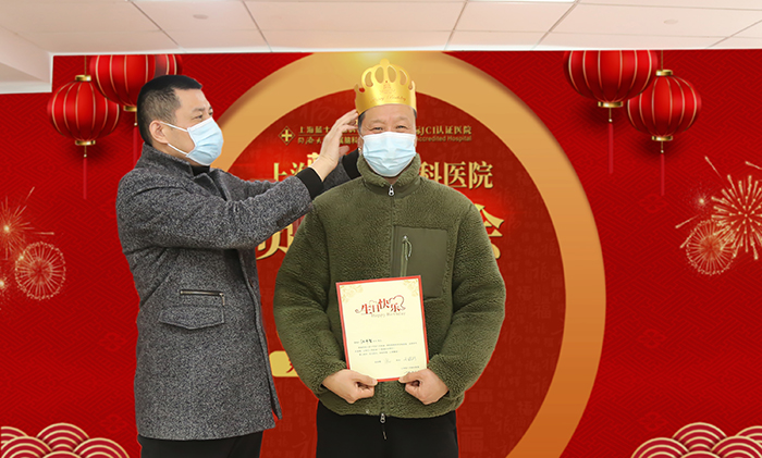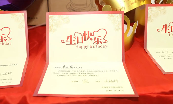 “祝大家生日快樂,虎氣沖天!”醫(yī)院總經理兼黨支部書記朱敏、院長項耀鈞、副總經理兼工會主席吳春芳等領導親臨生日會現(xiàn)場,除了送上必不可少的生日祝福,還為“壽星”們準備了精美的生日禮物。