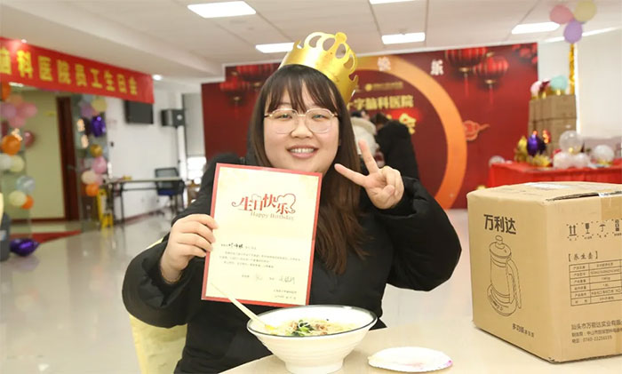 藥械科檔案管理員周群香滿臉笑容地說:“特別特別開心!醫(yī)院給每位員工過生日,說明院領導是實實在在想著每位員工的,這便是最快樂、最幸福的事。”