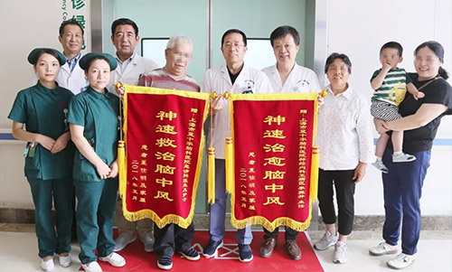 最終夏大爺順利康復(fù),左側(cè)肢體能正;顒(dòng),言語(yǔ)功能基本恢復(fù),基本未留后遺癥。出院前,家屬為感謝醫(yī)務(wù)人員的“神速”救治,給急診科齊洪閣主任以及神經(jīng)內(nèi)科李振并主任各送來(lái)了錦旗。“真是感謝你們,太感謝你們了,非常感謝......”