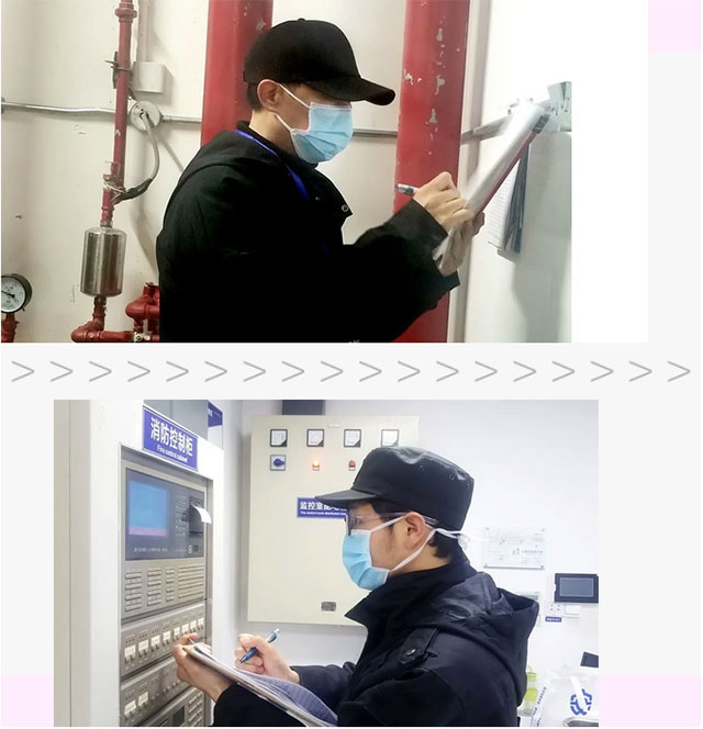 ▲ 疫情期間,消防站安保隊員在行動,24小時全面檢測、監(jiān)控水泵房,消控主機柜等消防設(shè)備設(shè)施。