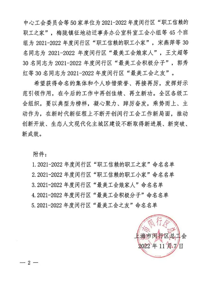近日,上海市閔行區(qū)總工會下發(fā)《關(guān)于命名2021-2022年度閔行區(qū)職工信賴的職工之家、職工信賴的職工小家、最美工會娘家人、最美工會積極分子、最美工會之友的決定》文件,上海藍十字腦科醫(yī)院總經(jīng)理兼黨支部書記朱敏榮獲閔行區(qū)“最美工會之友”稱號。