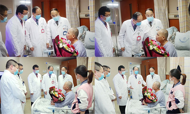 從2020年12月16日“寧波好人”莫鋼廷轉院至今,在上海藍十字腦科醫(yī)院已經(jīng)住院91天,若加上從12月2日莫鋼廷工作時從高處摔落下來正好有105天。這是自3月1日莫鋼廷順利接受顱骨雙側大面積修復手術后,醫(yī)院高層管理團隊再次來看望莫鋼廷及始終陪護在旁的妻子馮凰芬。神經(jīng)外科6B病區(qū)主任潘仁龍對小莫說,“尤其是朱敏書記,自始至終都十分關注你的安危和健康呢!”。