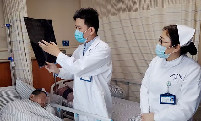 ▲ 正月初三早晨,張琪博士(中)與劉春醫(yī)生查看患者病情