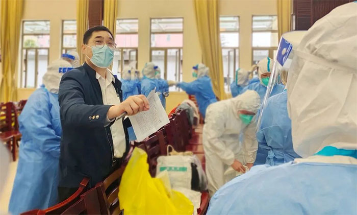當(dāng)隊員們各自達到采樣點開始忙碌后,潘耀良副院長依然不敢放松,時刻關(guān)注著微信群。“潘院,PDA沒墨了”、“潘院,物資不夠”、“潘院,試管告急”、“潘院,轉(zhuǎn)場需要車輛接送”……“好,馬上送來”、“好,我馬上聯(lián)系”、“好,馬上來接”……他總是在第一時間,處理好來自各方面的突發(fā)狀況。