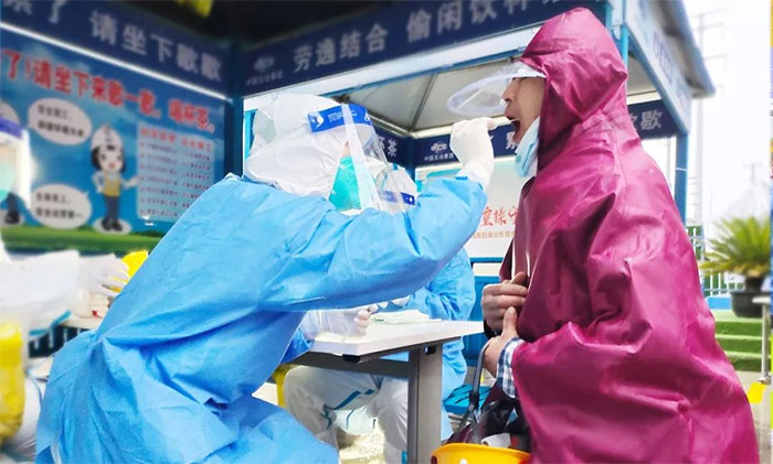 當(dāng)天,陳穎輾轉(zhuǎn)兩個采樣點,采集了1000余例樣本,手酸、腰痛......一個字“累”,但她覺得很值得,很有意義。當(dāng)轉(zhuǎn)場到工地,一身“大白”裝的她從車上下來時,工人們驚喜地說“啊,醫(yī)生來了”。聽到這句話的一瞬間,陳穎感到責(zé)任感、使命感噴涌而出,“感受到工友們充分的信任與依賴。那一刻,就覺得所有的辛苦都值了。”