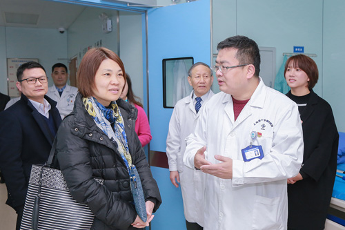 上午九點(diǎn),顧暉書(shū)記一行來(lái)到藍(lán)十字腦科,先后深入全數(shù)字化復(fù)合手術(shù)室、ICU重癥監(jiān)護(hù)病區(qū)、神經(jīng)內(nèi)科病區(qū)、神經(jīng)康復(fù)醫(yī)學(xué)科、高壓氧科、醫(yī)學(xué)影像科等臨床重點(diǎn)科室實(shí)地考察。醫(yī)院舒適的就醫(yī)環(huán)境、精良的軟硬件配置、人性化的醫(yī)療服務(wù)等贏得顧暉書(shū)記一行的贊許。
