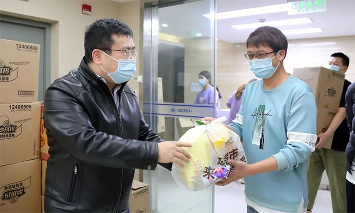 3月29日,在藍(lán)十字腦科醫(yī)院工會的組織下,醫(yī)院總經(jīng)理兼黨支部書記朱敏、副總經(jīng)理兼工會主席吳春芳逐一為抗疫員工發(fā)放慰問物資。這批物資由閔行區(qū)社會醫(yī)療行業(yè)工會捐贈,以慰問為疫情防控工作不懈努力的醫(yī)護(hù)工作者。