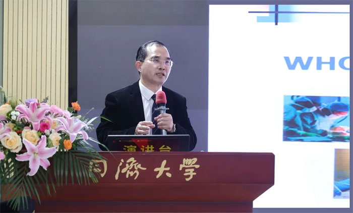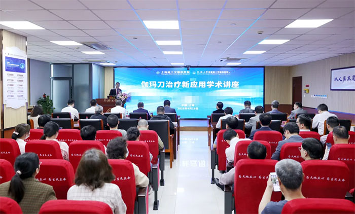 開機儀式后,在醫(yī)院多功能會議廳舉辦了“伽瑪?shù)吨委熜聭?yīng)用”學(xué)術(shù)講座,由潘耀良副院長主持。