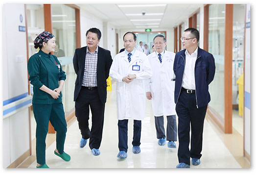 兩位主任一行先后深入我院全數(shù)字化復合手術室、ICU 重癥監(jiān)護病區(qū)、優(yōu)質(zhì)護理示范病區(qū)、美國尼高力視頻腦電監(jiān)測、神經(jīng)康復醫(yī)學科、高壓氧科、醫(yī)學影像科、DSA 介入中心、急診科等臨床重點科室實地考察,并親切交談。
