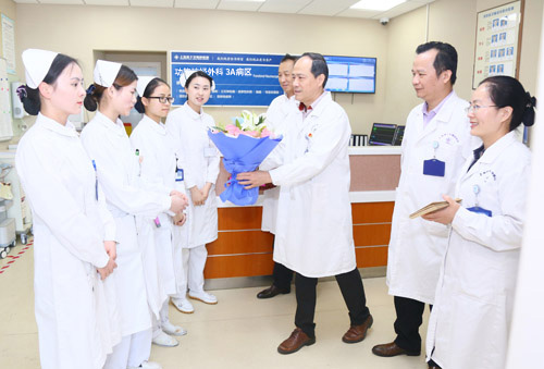 4月25日,在護理部的組織下,項耀鈞院長帶領(lǐng)醫(yī)務(wù)科科長沈廣智、護理部主管護師李京納來到事發(fā)病區(qū)。項耀鈞院長對當(dāng)事護士的工作給予了充分的肯定,對她們的遭遇表達了深切的關(guān)懷,同時更對她們的堅定和無私給予了高度贊揚。