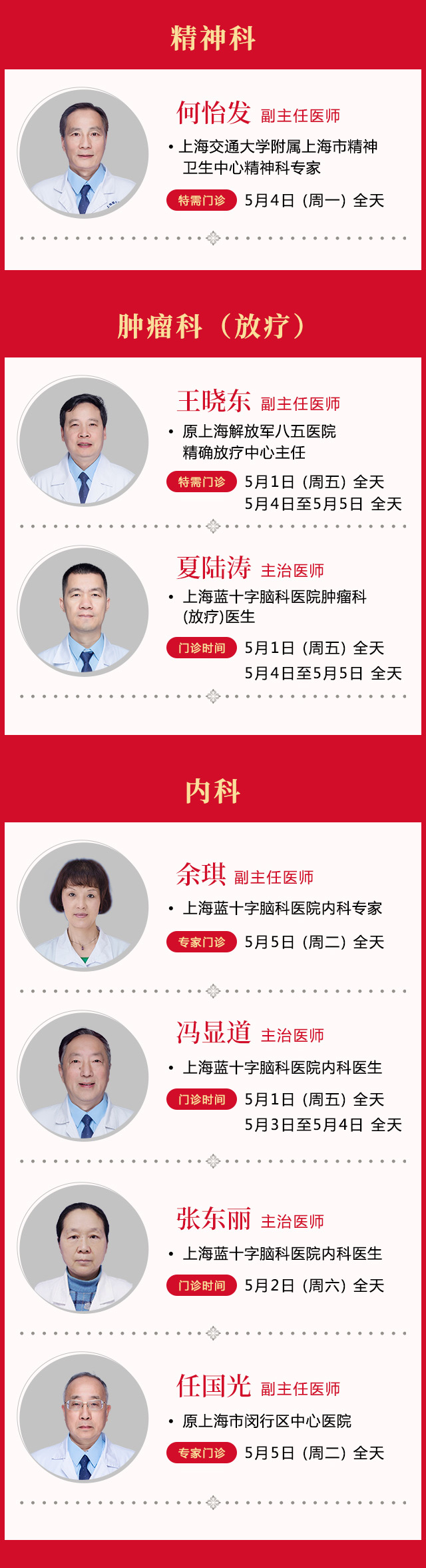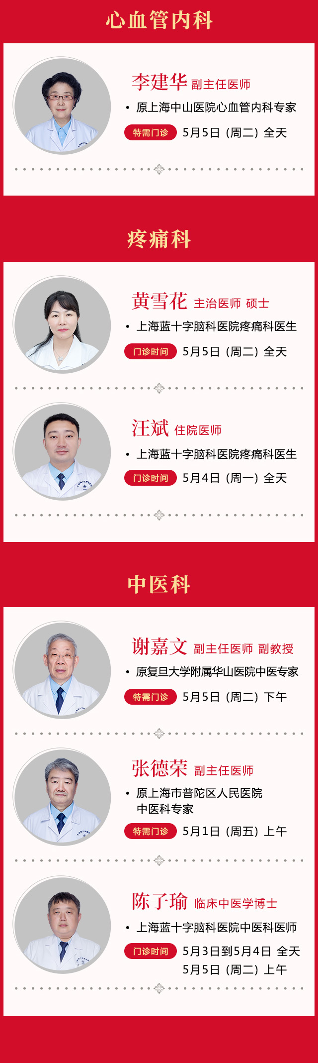 尊敬的廣大市民:您好!為滿足廣大患者朋友在節(jié)假日期間的就醫(yī)需求,提供便捷的診療服務,在五一節(jié)期間,即5月1日(周五)—5月5日(周二),我院門、急診照常開診,各檢查項目照常開放。具體門、急診安排如下: