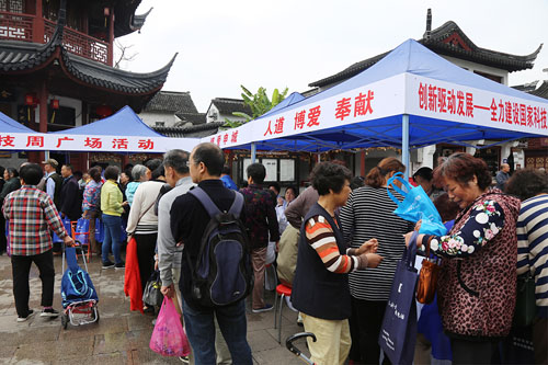 為紀(jì)念國(guó)際紅十字運(yùn)動(dòng),大力弘揚(yáng)“人道、博愛、奉獻(xiàn)”的紅十字精神,上海市閔行區(qū)七寶鎮(zhèn)紅十字會(huì)在七寶古鎮(zhèn)鐘樓廣場(chǎng)組織開展了以“博愛申城——紀(jì)念第71個(gè)世界紅十字日”為主題的5.8紅十字博愛周活動(dòng)。