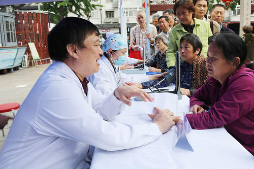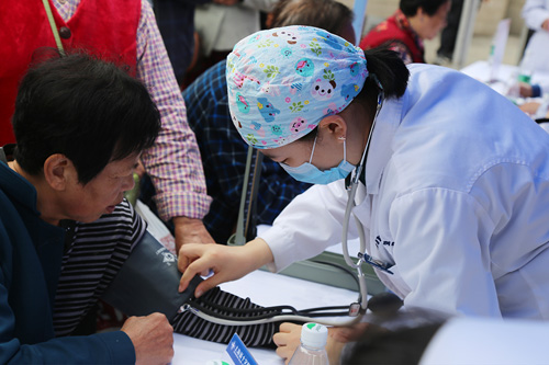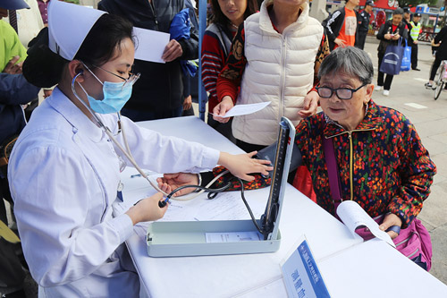護(hù)師為市民測(cè)量血壓