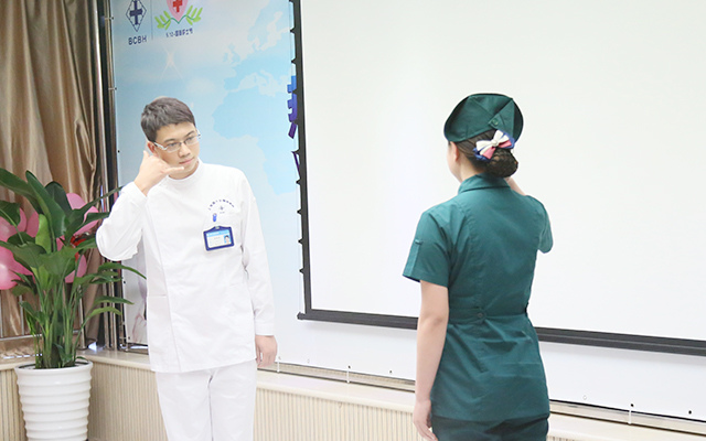領導致辭完畢,藍十字腦科護士們給大家獻上了一場寓教于樂的禮儀情景。簭淖o士的儀容、儀表、站姿、行走等方面,對護士禮儀在臨床護理工作中的體現(xiàn)進行了精彩的演繹。