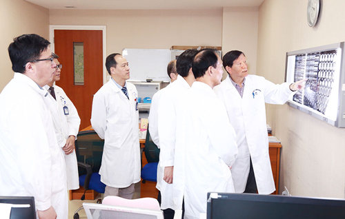 走馬上任的第一天,沈教授即深入科室展開(kāi)大查房,查看了科室重點(diǎn)病人,并與囊括政府特殊津貼專家侯増欣等的藍(lán)十字腦科外科專家團(tuán)隊(duì)針對(duì)三位待手術(shù)的患者進(jìn)行了會(huì)診討論。據(jù)了解,這并不是沈教授第一次攜手與藍(lán)十字的親密協(xié)作。自藍(lán)十字建院9年以來(lái),沈教授對(duì)我院的發(fā)展一直給予了密切的關(guān)心與關(guān)注,尤其是對(duì)我院神經(jīng)外科學(xué)科建設(shè)更是大力支持。每遇重大疑難病例或者學(xué)術(shù)問(wèn)題,沈教授均會(huì)到院參與并指導(dǎo)。如今,沈建康教授從客座教授到正式成為我院神經(jīng)外科主任,“我們終于如愿以償了,藍(lán)十字腦科外科學(xué)科發(fā)展如虎添翼,是眾多腦病患者的福音!”副院長(zhǎng)周克祥說(shuō)。