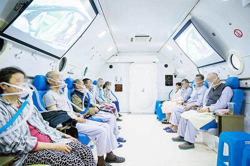 高壓氧治療對(duì)于促進(jìn)腦血管病患者康復(fù)有不可替代的作用,患者正在氧艙內(nèi)接受治療