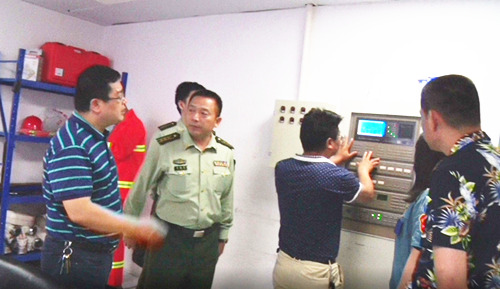 許擁軍參謀、黨支部書記朱敏、總指揮吳春芳在消控中心檢查消防設(shè)備,指揮救援