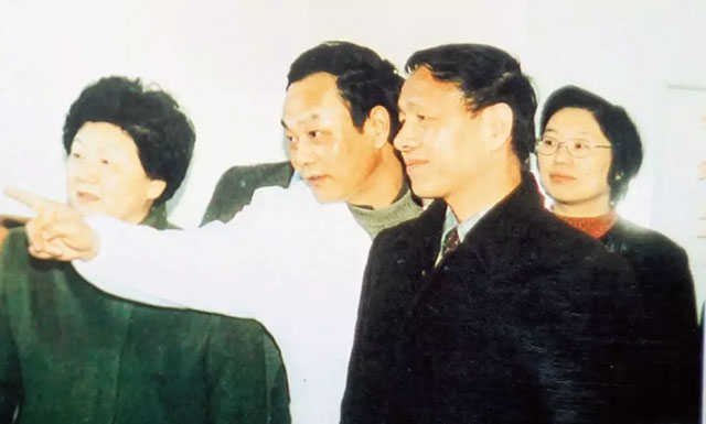▲ 2000年2月,左煥琛副市長(zhǎng)(左一)參觀聯(lián)合病房,姚金榮(左二)在講解
