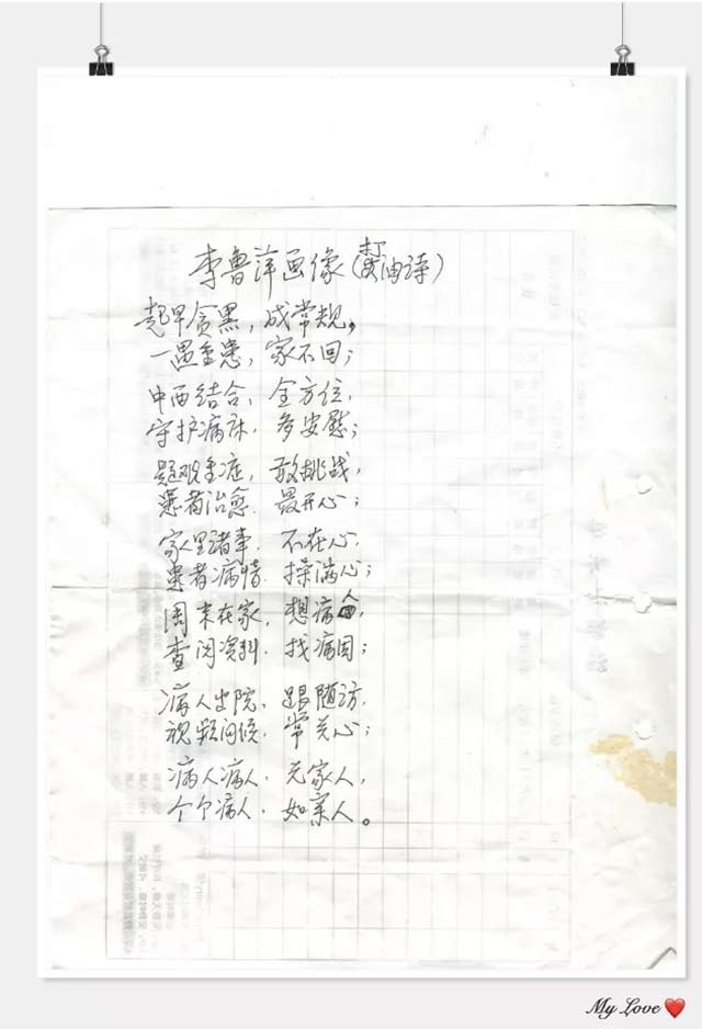 20日一大早,天剛蒙蒙亮,準(zhǔn)備趕往醫(yī)院上班的李魯萍就在飯桌上看到了這首打油詩。在上海藍(lán)十字腦科醫(yī)院工作這么多年來,心系著每一位患者的安危,她始終是科室“來得最早,走得最晚”的人。沒來得及細(xì)細(xì)品味這份特殊的生日禮物,李主任就將打油詩塞進(jìn)包里出門了。